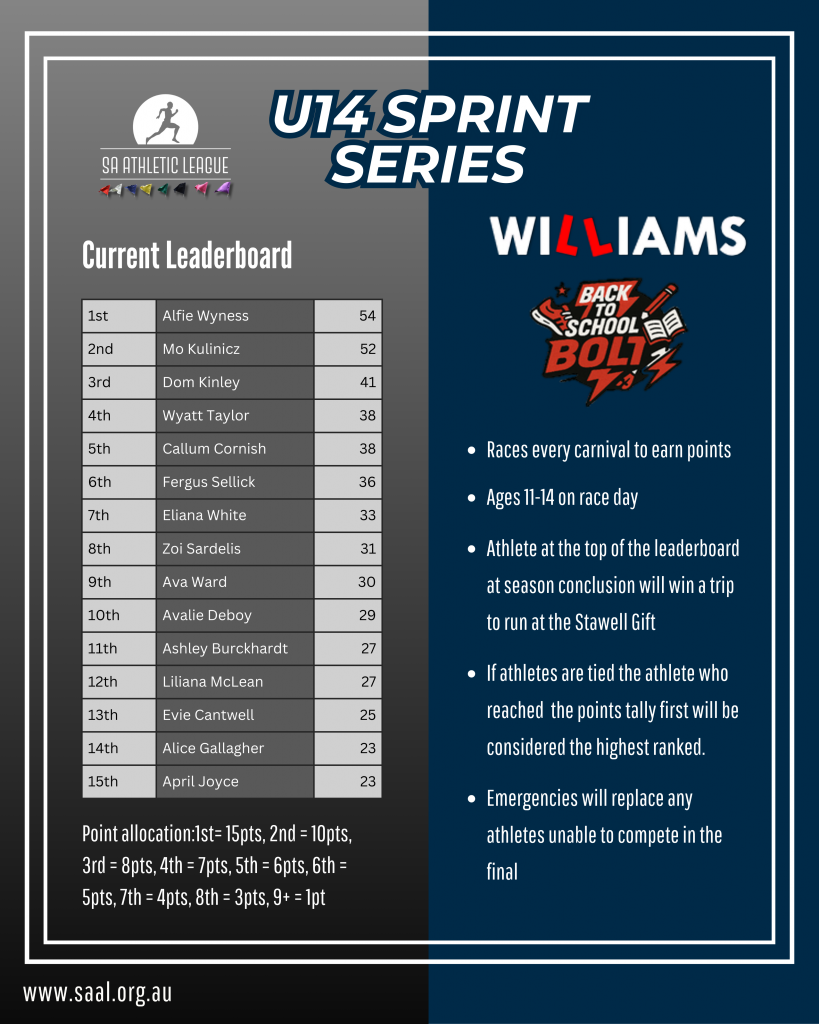 U14 and U18 series points will apply at this carnival so don’t miss one of your last opportunities to get points in these series.